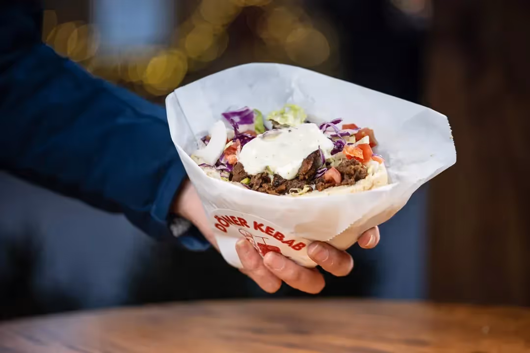 Döner Kebab: In Germany, Döner Kebab is a popular street food. It consists of rotisserie-cooked meat sliced onto traditional Döner bread, topped with various ingredients like onions and lettuce, and finished with a flavorful sauce.