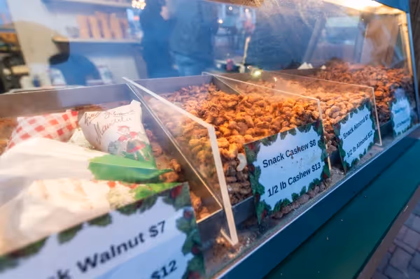 German Nuts, Popcorn, Cinnamon Roasted Pecans, Reese's Flavored Almonds, Kettle Corn, Caramel Corn, Lebkuchen Cookies, Licorice Ropes, Snack, Nuts, Peanuts, Almonds, Walnuts, Pecans, Roasted, Candied