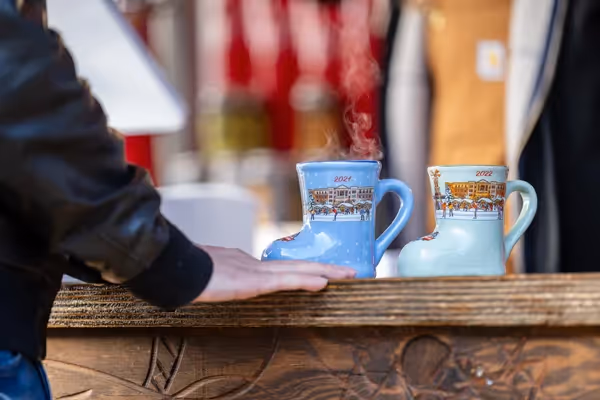 German Glühwein (mulled wine), Glühbier (mulled beer), select German beers