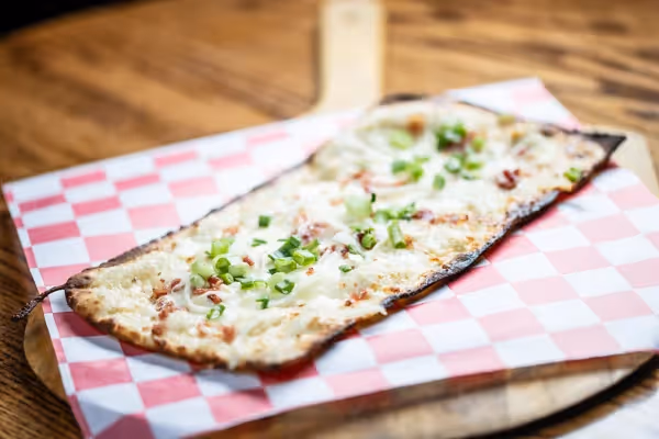 Freshly-baked, traditional Swiss flatbread pizzas