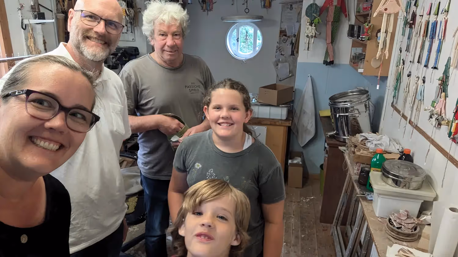 In 2017, 2018, and 2019, Christian and Andreas Werner of Werner Reifentiere played a pivotal role in establishing the Market and Werkstatt program. Their creation of wooden rings from tree stumps, followed by the ceremonial unveiling of the shapes concealed within, remains a cherished memory for visitors and team members alike. Many Market visitors proudly display wooden animals in their homes, reminders of those genuinely enchanting experiences. The Werner’s' small, old-world workshop is the last commercial production site where tire animals are traditionally handcrafted and sold worldwide. Its rustic workbenches, delightfully creaky stairs, and floor-to-ceiling shelves tell the stories of centuries-old wood-turning history. Sandra and Maria prioritized visiting Christian and Andreas, as well as their families, to deepen this long-established friendship.